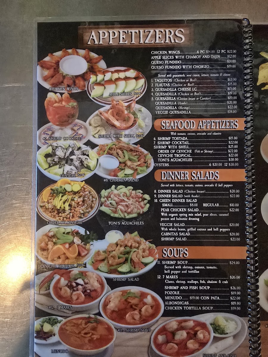 Chicken, steak, shrimp and chorizo. Served with rice & beans, guacamole, fresh cheese, nopales (cactus), green onions, topped with a special sauce.
